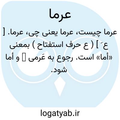 عرما. [ ع َ ] ( ع حرف استفتاح ) بمعنی «أما» است. رجوع به عَرمی ̍ و أما شود.