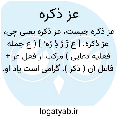 عز ذکره. [ ع َزْ زَ ذِ رُه ْ ] ( ع جمله فعلیه دعایی ) مرکب از فعل عز + فاعل آن ( ذکر ). گرامی است یاد او. عزیز است نام او. تسبیحی است که پس از نام خدای تعالی آرند: توفیق صلح خواهیم از ایزد عز ذکره. ( تاریخ بیهقی ص 72 ). وصیت کنم شما را که خدای عز ذکره به یگانگی شناسید. ( تاریخ بیهقی ص 338 ). سیاوش خدای را عز ذکره سجده شکر برد که او را زنده یافت. ( فارسنامه ابن البلخی ص 46 ). عبادت ایزدی عز ذکره از مردم برداشت.( فارسنامه ابن البلخی ص 85 ). و رجوع به عَزَّ شود.