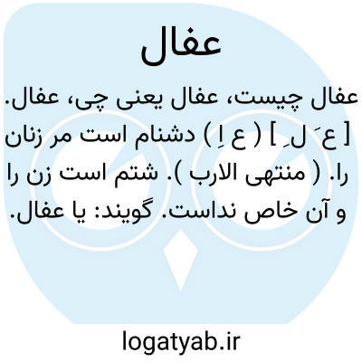 عفال. [ ع َ ل ِ ] ( ع اِ ) دشنام است مر زنان را. ( منتهی الارب ). شتم است زن را و آن خاص نداست. گویند: یا عفال. ( از اقرب الموارد ).