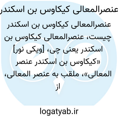 [ویکی نور] «کیکاوس بن اسکندر عنصر المعالی»، ملقب به عنصر المعالی، از امرا و پادشاهان آل زیار بوده که چندی نیز بر قسمتی از کوهستان های فراخ مازندران حکمرانی می کرده است.