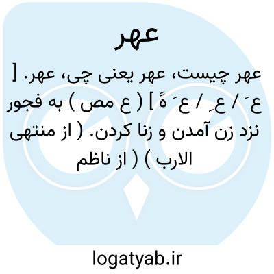 عهر. [ ع ِ ] ( ع اِ ) زنا. ( منتهی الارب ) ( آنندراج ). زنا و فجور. ( ناظم الاطباء ).