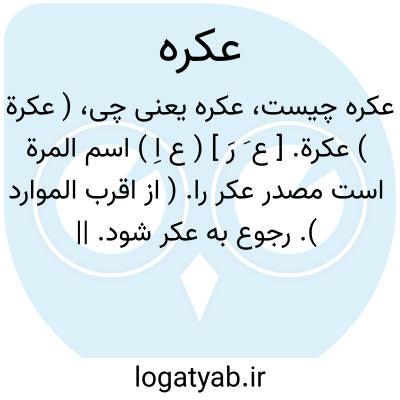 ( عکرة ) عکرة. [ ع َ رَ ] ( ع اِ ) اسم المرة است مصدر عکر را. ( از اقرب الموارد ). رجوع به عکر شود. || حمله. ( منتهی الارب ). حمله و یورش. ( ناظم الاطباء ). حمله پس از فرار. ( از اقرب الموارد ).