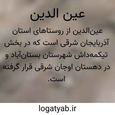 عینالدین از روستاهای استان آذربایجان شرقی است که در بخش تیکمهداش شهرستان بستانآباد و در دهستان اوجان شرقی قرار گرفته است. این روستا در ۶۶ کیلومتری تبریز واقع شده و وسعت آن حدود ۱۲٬۰۰۰ هکتار میباشد. بر اساس آمار سال ۱۳۹۵، عینالدین ۲۴۲۳ نفر جمعیت و ۷۰۶ خانوار دارد. این روستا از نظر طبیعی دارای چشماندازهای بکر و کوهستانی است و در درهای با ارتفاع ۱۶۸۰ متر از سطح دریا واقع شده است. رودخانههای اوجانچایی و آلآخی از جمله منابع آبی این منطقه محسوب میشوند.