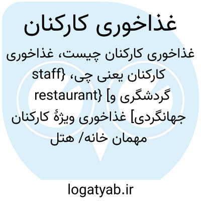 {staff restaurant} [گردشگری و جهانگردی] غذاخوری ویژۀ کارکنان مهمان خانه/ هتل یا باشگاه یا دیگر سازمان های خدماتی متـ. رستوران کارکنان