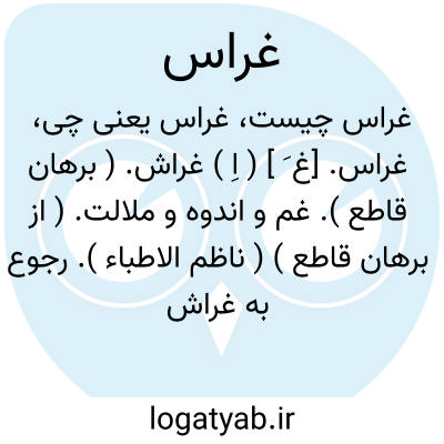 غراس. [غ َ ] ( اِ ) غراش. ( برهان قاطع ). غم و اندوه و ملالت. ( از برهان قاطع ) ( ناظم الاطباء ). رجوع به غراش شود.