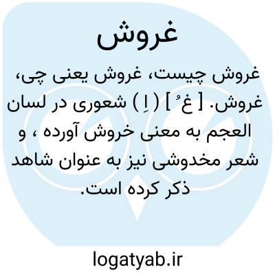 غروش. [ غ ُ ] ( اِ ) شعوری در لسان العجم به معنی خروش آورده، و شعر مخدوشی نیز به عنوان شاهد ذکر کرده است. ظاهراً مصحف خروش است.