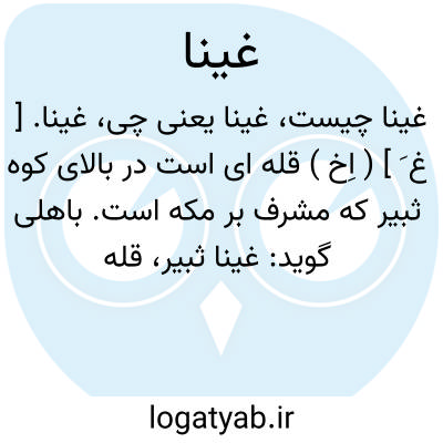غینا. [ غ َ ] ( اِخ ) قله ای است در بالای کوه ثبیر که مشرف بر مکه است. باهلی گوید: غینا ثبیر، قله ثبیر است و آن را غینا ( بی همزه ) مینامند و آن سنگی قبه وار است. ( از معجم البلدان ). قله کوه ثبیر از اثبره هفتگانه که عبارتند از:ثبیر غینا، ثبیر الاحدب، ثبیر الاعرج، ثبیر الزنج، ثبیر الخضراء، ثبیر النصع و ثبیر الاثبره. ( از تاج العروس ) ( اقرب الموارد ). ابوجندب هذلی گوید: