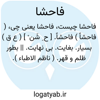 ( فاحشاً ) فاحشاً. [ ح ِ شَن ْ ] ( ع ق ) بسیار. بغایت. بی نهایت. || بطور ظلم و قهر. ( ناظم الاطباء ).