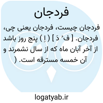 فردجان. [ ف ُ دَ ] ( اِ ) پنج روز باشد از آخر آبان ماه که از سال نشمرند و آن خمسه مسترقه است. ( یادداشت به خط مؤلف ). || ماه اول پاییز. ( ناظم الاطباء ).