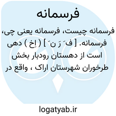 فرسمانه. [ ف َ رَ ن َ ] ( اِخ ) دهی است از دهستان رودبار بخش طرخوران شهرستان اراک، واقع در 27هزارگزی شمال طرخوران. ناحیه ای است واقع در دامنه، سردسیر و دارای 212 تن سکنه است. از قنات مشروب میشود. محصولاتش غلات، بنشن، توت و بادام است. اهالی به کشاورزی گذران میکنند.راه مالرو دارد. ( از فرهنگ جغرافیایی ایران ج 2 ).