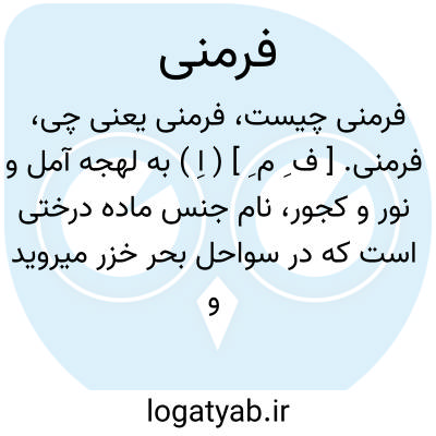 فرمنی. [ ف ِ م ِ ] ( اِ ) به لهجه آمل و نور و کجور، نام جنس ماده درختی است که در سواحل بحر خزر میروید و رشدآن در زمین های شنی بیشتر است. درخت خرما که در تهران فراوان است پیوندی است از همان درخت با یک درخت ژاپونی. ( از جنگل شناسی تألیف کریم ساعی ج 1 ص 192 ).
