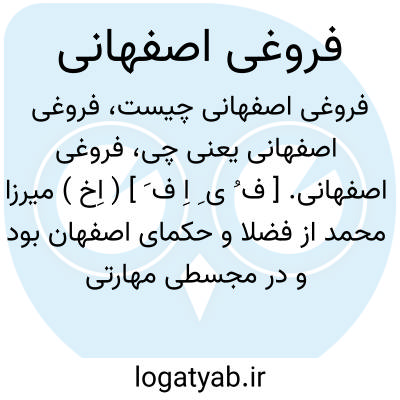 فروغی اصفهانی. [ ف ُ ی ِ اِ ف َ ] ( اِخ ) میرزا محمد از فضلا و حکمای اصفهان بود و در مجسطی مهارتی کامل داشته است. در اواسط عمر سفارت و سیاحت کرده و با تیمور شاه افغان راه یافته، ملک الشعرای وی شده بود. ( از مجمع الفصحاء ج 2 ص 383 ).