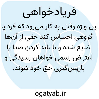 فریادخواهی به معنای اعتراض کردن یا طلب حق از طریق بیان نارضایتی و صدای بلند است. این واژه معمولاً وقتی به کار می‌رود که فرد یا گروهی احساس کند حقی از آن‌ها ضایع شده و با بلند کردن صدا یا اعتراض رسمی خواهان رسیدگی و بازپس‌گیری حق خود شوند. فریادخواهی می‌تواند به شکل لفظی، نوشتاری یا حتی قانونی باشد و معمولاً هدف آن جلب توجه دیگران یا مسئولان برای اصلاح ظلم یا بی‌عدالتی است. در متون تاریخی و اجتماعی، فریادخواهی نشانگر مبارزه مردم با ستم، غصب اموال یا بی‌عدالتی‌های حکومت است. این عمل، نشانه حق‌طلبی و پیگیری حقوق مشروع است و اغلب با درخواست رسیدگی، شکایت یا تحرک اجتماعی همراه است. فریادخواهی ممکن است فردی یا جمعی باشد و می‌تواند به نتایج اصلاحی، بازپس‌گیری حق یا تغییر قوانین منجر شود. این واژه بار معنایی عاطفی و اخلاقی دارد و نشانگر ایستادگی در برابر ظلم است. به طور خلاصه، این واژه یعنی بلند کردن صدا برای احقاق حق و مقابله با ناعدالتی.
