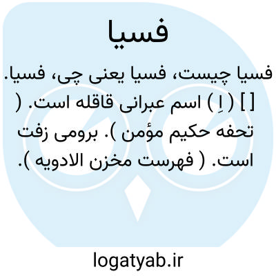 فسیا. [ ] ( اِ ) اسم عبرانی قاقله است. ( تحفه حکیم مؤمن ). برومی زفت است. ( فهرست مخزن الادویه ).