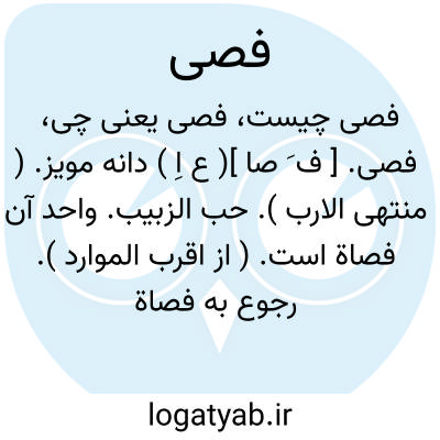 فصی. [ ف َ صا ]( ع اِ ) دانه مویز. ( منتهی الارب ). حب الزبیب. واحد آن فصاة است. ( از اقرب الموارد ). رجوع به فصاة شود.