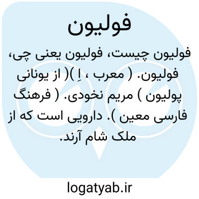 فولیون. ( معرب، اِ )( از یونانی پولیون ) مریم نخودی. ( فرهنگ فارسی معین ). دارویی است که از ملک شام آرند. جراحتهای تازه را نافع است. ( آنندراج ) ( از برهان ). اسم یونانی جعده است. ( فهرست مخزن الادویه ).