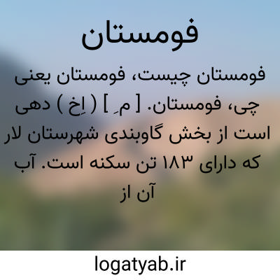 فومستان. [ م ِ ] ( اِخ ) دهی است از بخش گاوبندی شهرستان لار که دارای 183 تن سکنه است. آب آن از چشمه و چاه و محصول عمده اش غله، تنباکو و صیفی است. ( از فرهنگ جغرافیایی ایران ج 7 ).