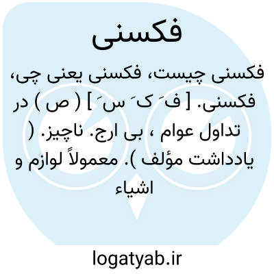 فکسنی. [ ف َ ک َ س َ ] ( ص ) در تداول عوام، بی ارج. ناچیز. ( یادداشت مؤلف ). معمولاً لوازم و اشیاء ازکارافتاده و کهنه را گویند.