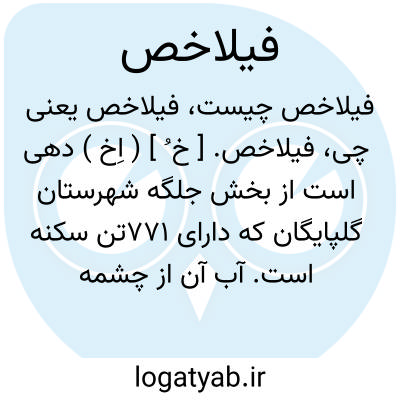 فیلاخص. [ خ ُ ] ( اِخ ) دهی است از بخش جلگه شهرستان گلپایگان که دارای 771تن سکنه است. آب آن از چشمه و قنات و محصول عمده اش غله و لبنیات است. ( از فرهنگ جغرافیایی ایران ج 6 ).