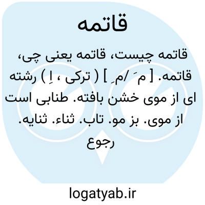 قاتمه. [ م َ /م ِ ] ( ترکی، اِ ) رشته ای از موی خشن بافته. طنابی است از موی. بز مو. تاب. ثناء. ثنایه. رجوع به همین کلمه شود. نوعی رسن از پشم خشن تافته باریکتر از طناب.