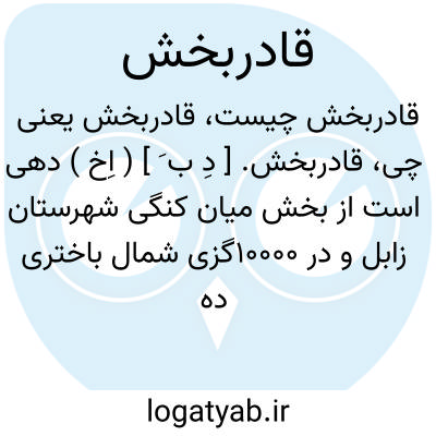 قادربخش. [ دِ ب َ ] ( اِخ ) دهی است از بخش میان کنگی شهرستان زابل و در 10000گزی شمال باختری ده دوست محمد نزدیک مرز افغانستان و در جلگه واقع و هوای آن گرم و معتدل است. 100 تن سکنه دارد. آب آن از رودخانه هیرمند و محصولات آن غلات و لبنیات و شغل اهالی زراعت و گله داری است. راه مالرو دارد. ساکنین آن از طایفه سارانی هستند. ( فرهنگ جغرافیائی ایران ج 8 ).