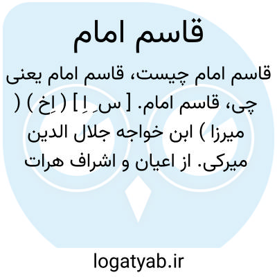 قاسم امام. [ س ِ اِ ] ( اِخ ) ( میرزا ) ابن خواجه جلال الدین میرکی. از اعیان و اشراف هرات بود. وی در جوانی به تحصیل علوم همت گماشت و به مطالعه رسائل متداول عصر پرداخت و در خوشنویسی زبانزد عموم گردید و در فن شطرنج صغیر و کبیر مهارت تمام یافت. اشعار دلفریبش به سلاست الفاظ و جودت معانی مزین است و منشآت پرمایه اش در نظر فاضلان سخن سنج مطبوع. این اشعار از اوست: