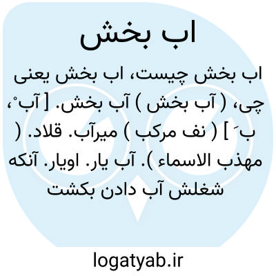 ( آب بخش ) آب بخش. [ آب ْ، ب َ ] ( نف مرکب ) میرآب. قلاد. ( مهذب الاسماء ). آب یار. اویار. آنکه شغلش آب دادن بکشت بود.