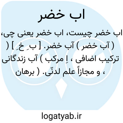 ( آب خضر ) آب خضر. [ ب ِ خ ِ ] ( ترکیب اضافی، اِ مرکب ) آب زندگانی، و مجازاً علم لدنّی. ( برهان ):