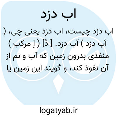 ( آب دزد ) آب دزد. [ دُ] ( اِ مرکب ) منفذی بدرون زمین که آب و نم از آن نفوذ کند، و گویند این زمین یا این کاریز آب دزد دارد.