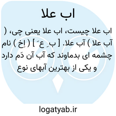 ( آب علا ) آب علا. [ ب ِ ع َ ] ( اِخ ) نام چشمه ای بدماوند که آب آن دَم دارد و یکی از بهترین آبهای نوع خود برای گوارش و دیگر خاصیتهای طبی است.