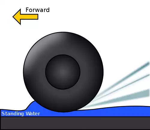 آب پیمایش. آب پیمایش ( انگلیسی: Hydroplaning ) شرایطی است که برای تایر خودروها هواگردها پیش می آید. این اتفاق زمانی می افتد که لایه ای از آب میان چرخ های وسیله نقلیه و سطح جاده فاصله می اندازد و موجب از میان رفتن کشش می شود و به عدم پاسخ وسیله نقلیه به ابزارهای کنترلی ( از قبیل فرمان و ترمز ) می انجامد. اگر این اتفاق برای همه چرخ ها به صورت همزمان رخ دهد، خودرو تبدیل به یک سورتمه بدون کنترل می شود و اگر فقط برای برخی چرخ ها پیش آید به انحراف خودرو خواهد انجامید.