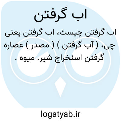 ( آب گرفتن ) (گِ رِ تَ ) ۱ - (مص م. ) عصاره گرفتن، استخراج شیرة میوه. ۲ - (مص ل. ) به آبرو و اعتبار رسیدن.