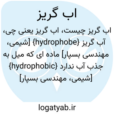 {hydrophobic} [شیمی، مهندسی بسپار] ویژگی ماده ای که میل به جذب آب ندارد