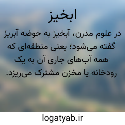 ( آبخیز ) ( اسم ) ۱- زمینی که هر جای آنرا بکنند آب بیرون آید ۲- زمین آبدار مانند چمن. ۳ - مد مقابل جزر. ۴ - موج. ۵ - طوفان ۶ - طغیان و افزایش آب در فصل بهار.