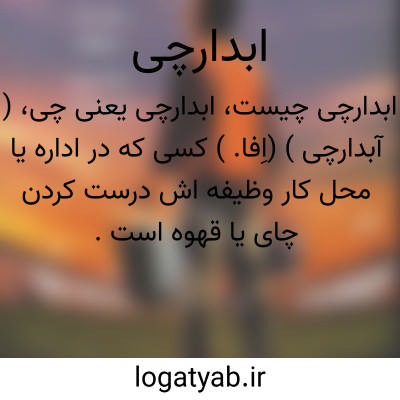( آبدارچی ) (اِفا. ) کسی که در اداره یا محل کار وظیفه اش درست کردن چای یا قهوه است.