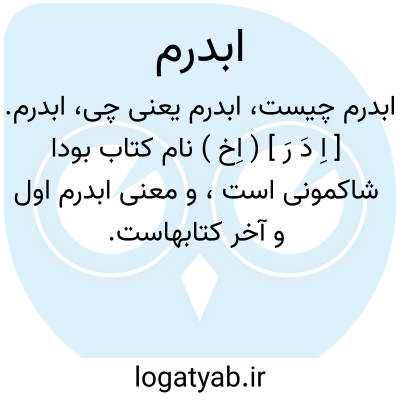ابدرم. [ اِ دَ رَ ] ( اِخ ) نام کتاب بودا شاکمونی است، و معنی ابدرم اول و آخر کتابهاست.