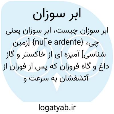 {nuée ardente} [زمین شناسی] آمیزه ای از خاکستر و گاز داغ و گاه فروزان که پس از فوران از آتشفشان به سرعت و با تلاطم در دامنۀ آن سرازیر می شود و بخش زیرین آذرآواری را با خود حمل می کند