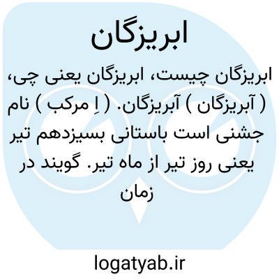 ( آبریزگان ) ( اسم ) ۱ - جشنی که در روز سیزدهم تیرماه در ایران باستان بر پا میداشتند و آب بر یکدیگر می پاشند آبریزان. ۲ - نوعی از طعام.