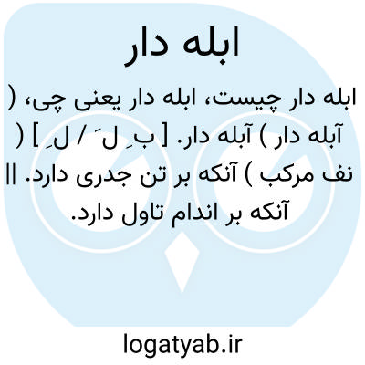 ( آبله دار ) آبله دار. [ ب ِ ل َ / ل ِ ] ( نف مرکب ) آنکه بر تن جدری دارد. || آنکه بر اندام تاول دارد.