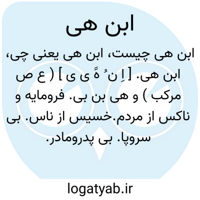 ابن هی. [ اِ ن ُ هََ ی ی ] ( ع ص مرکب ) و هی بن بی. فرومایه و ناکس از مردم.خسیس از ناس. بی سروپا. بی پدرومادر. و ظاهراً بیت منوچهری که اکنون لایقرء است اصلش این است:
