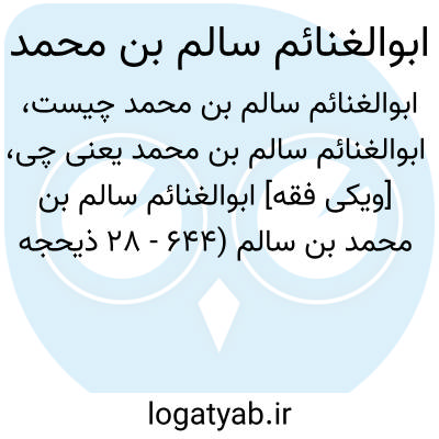 [ویکی فقه] ابوالغنائم سالم بن محمد بن سالم (۶۴۴ - ۲۸ ذیحجه ۶۹۸ق ۱۲۴۶-۲۶ سپتامبر ۱۲۹۹م )، محدث، قاضی، ناظر دیوان اشراف، دیوان کبیر و خزانه است.