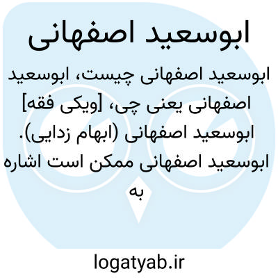 [ویکی فقه] ابوسعید اصفهانی (ابهام زدایی). ابوسعید اصفهانی ممکن است اشاره به اشخاص و شخصیت های ذیل باشد: • ابوسعید احمد بن سعید صفار اصفهانی، از محدّثین اصفهان در قرن چهارم هجری• ابن رسته ابوسعید حسن بن عبدالرحمان زهری اصفهانی، از محدّثین اصفهان در قرن سوم هجری• ابن ممشاد ابوسعید عبداللّه بن احمد اصفهانی، از محدّثین اصفهان• ابن منده ابوسعید سفیان بن محمد اصفهانی، از محدّثین اصفهان در قرن چهارم هجری• ابوسعید ابراهیم بن سعدان کاتب مدینی اصفهانی، از محدّثین اصفهان در قرن چهارم هجری• ابوسعید امامی اصفهانی، خوشنویس هنرمند عهد صفویّه در اصفهان• ابوسعید امامی اصفهانی، خوشنویس هنرمند عهد صفویّه در اصفهان• ابوسعید جبیر بن هارون معدل خرجانی اصفهانی، از محدّثین قرن سوم هجری در اصفهان• ابوسعید رارانی اصفهانی، از محدّثین اصفهان• ابوسعید محمد بن علی حنبلی اصفهانی، از محدثین اصفهان در قرن پنجم هجری• میرزا ابوسعید مشکی اصفهانی، از شخصیت های خاندان مشکی اصفهان• ابوسعید احمد بن محمد بغدادی اصفهانی، از محدّثین اصفهان• ابوسعید احمد بن محمد بن حسن اصفهانی، از محدّثین قرن پنجم هجری در اصفهان• ابوسعید احمد بن محمد معینی اصفهانی، از راویان ثقه اصفهان در قرن سوم هجری• ابوسعید خلیل بن بدر رارانی صوفی اصفهانی، از محدّثین و عرفای اصفهان در قرن ششم هجری