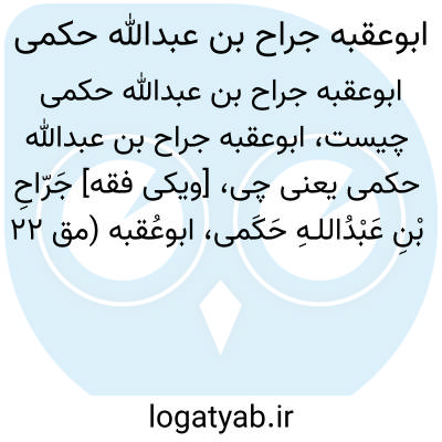 [ویکی فقه] جَرّاحِ بْنِ عَبْدُاللـهِ حَکَمی، ابوعُقبه (مق ۲۲ رمضان۱۱۲ق/ ۸ دسامبر ۷۳۰م)، سردار و حاکم معروف دورۀ اموی است.