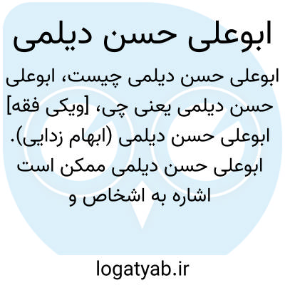[ویکی فقه] ابوعلی حسن دیلمی (ابهام زدایی). ابوعلی حسن دیلمی ممکن است اشاره به اشخاص و شخصیت های ذیل باشد: • ابوعلی رکن الدوله حسن دیلمی، حسن دیلمی ملقب به رکن الدوله و مُکَنّیٰ به ابوعلی پسر بویه (درگذشت ۹۷۶ میلادی) یکی از امرای اولیه آل بویه در ایران و عراق• ابوعلی مشرف الدوله حسن دیلمی، حسن دیلمی ملقب به مشرف الدوله و مُکَنّیٰ به ابوعلی، از ۱۰۲۱ تا ۱۰۲۵ میلادی، امیر آل بویه در عراق