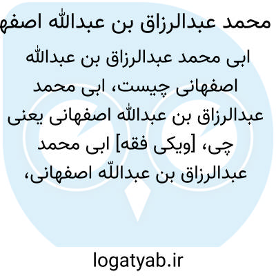 [ویکی فقه] ابی محمد عبدالرزاق بن عبداللّه اصفهانی، از محدّثین قرن چهارم هجری در اصفهان بوده است.