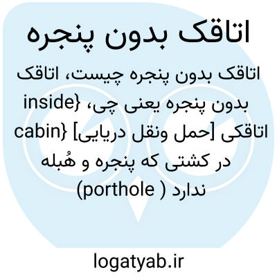 {inside cabin} [حمل ونقل دریایی] اتاقکی در کشتی که پنجره و هُبله (porthole ) ندارد