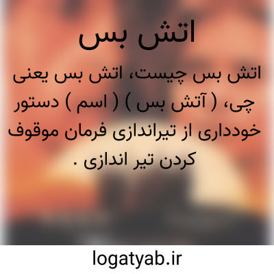 ( آتش بس ) ( اسم ) دستور خودداری از تیراندازی فرمان موقوف کردن تیر اندازی.