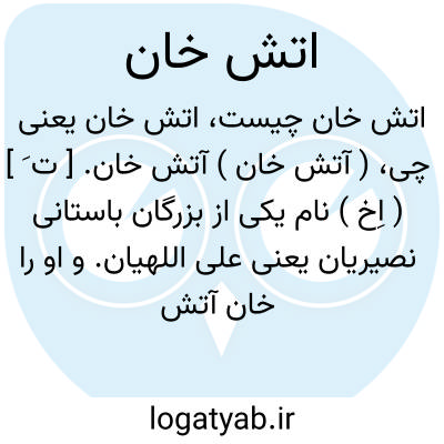( آتش خان ) آتش خان. [ ت َ ] ( اِخ ) نام یکی از بزرگان باستانی نصیریان یعنی علی اللهیان. و او را خان آتش نیز گویند.