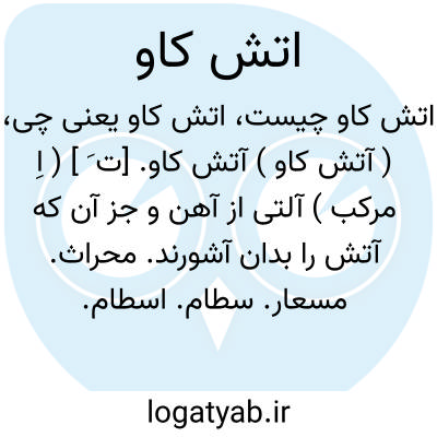 ( آتش کاو ) آتش کاو. [ت َ ] ( اِ مرکب ) آلتی از آهن و جز آن که آتش را بدان آشورند. محراث. مسعار. سطام. اسطام. محراک. انبر.