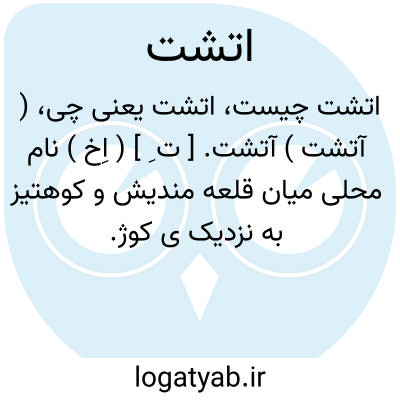 ( آتشت ) آتشت. [ ت ِ ] ( اِخ ) نام محلی میان قلعه مندیش و کوهتیز به نزدیک ی کوژ.